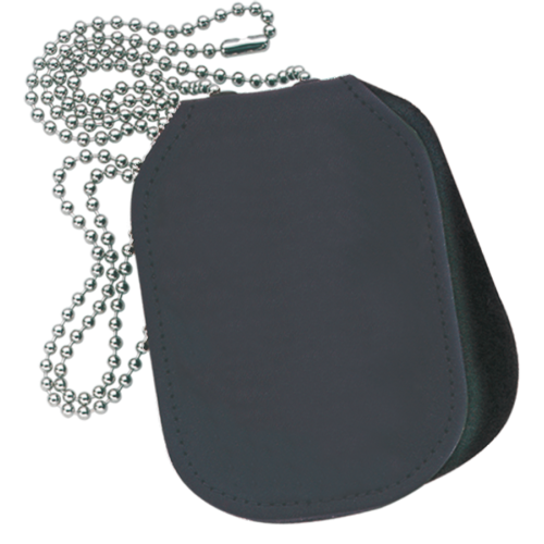 This fine leather oval badge holder has a Velcro closure and a 2 1/4" metal belt clip and can be worn around your neck with a chain.