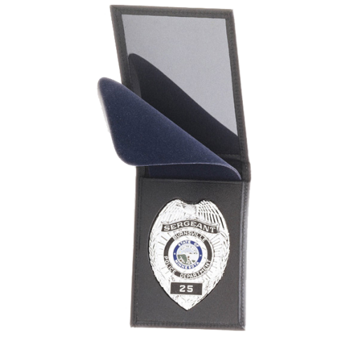 Pad Style leather case for a badge and ID card. Comes with attached soft leather separator between ID window and badge to protect both. This case has a recessed design to fit each badge shape. A stylish and professional way to store and display your badge and ID at a moments notice.