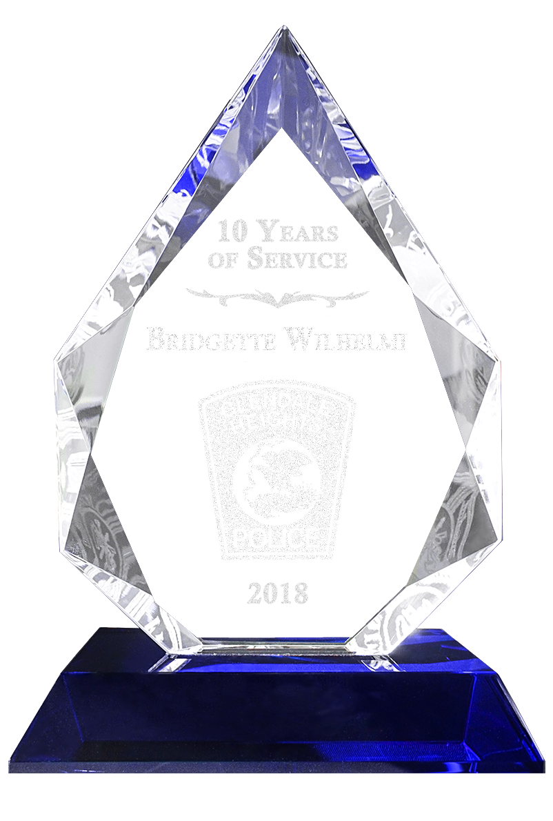 This beautiful glass award is perfect to commemorate an officer's or EMT's first year or many years of dedicated service.